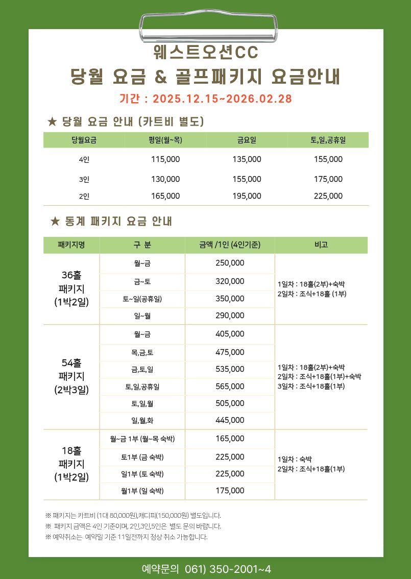 25년 동절기 이용요금 (25.12.15~26.02.28)