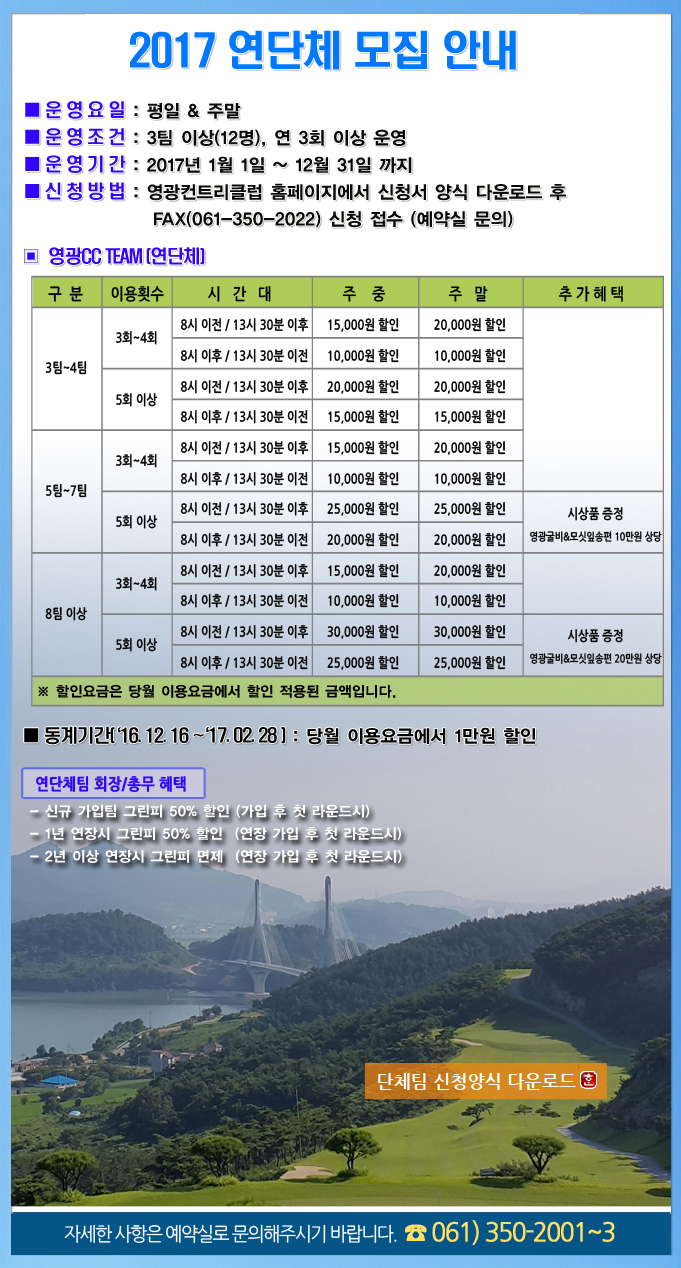 ▣ 영광CC 년간 단체팀 가입시 혜택 안내