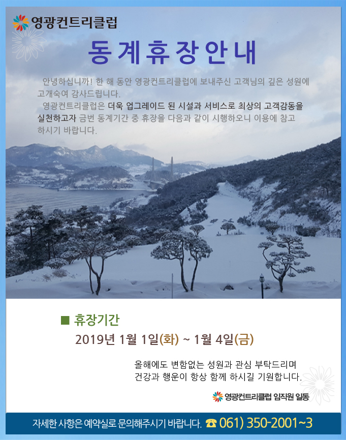 동계 휴장 안내, 1월 1일(화)~4일(금)